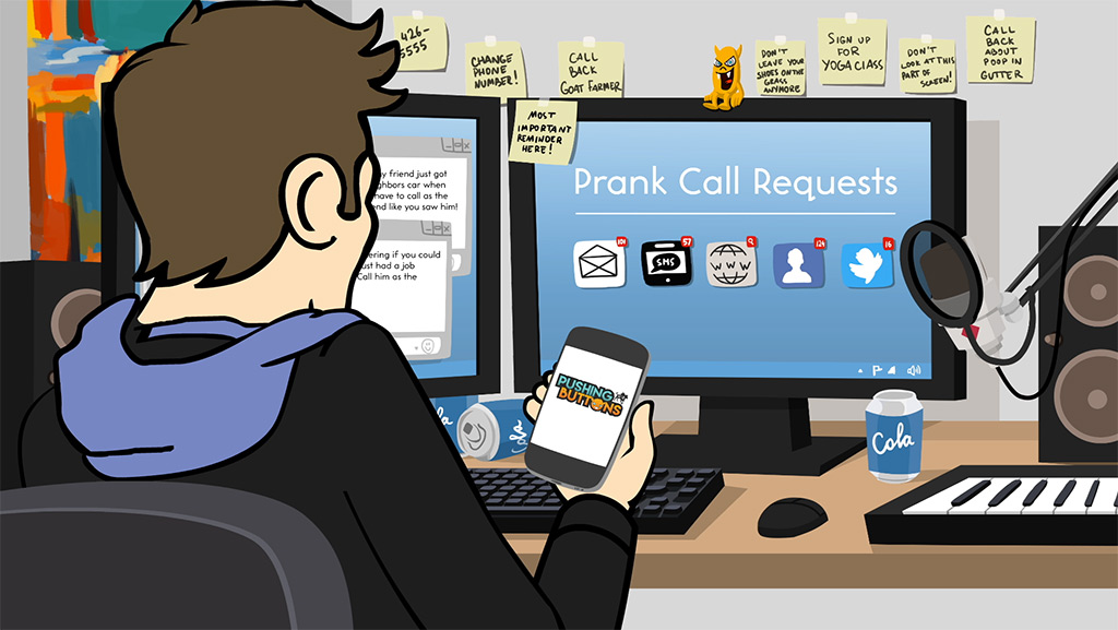 Opening sequence for the animated prank show “Pushing Buttons” on MTV2. Real calls. Real People. Really funny!